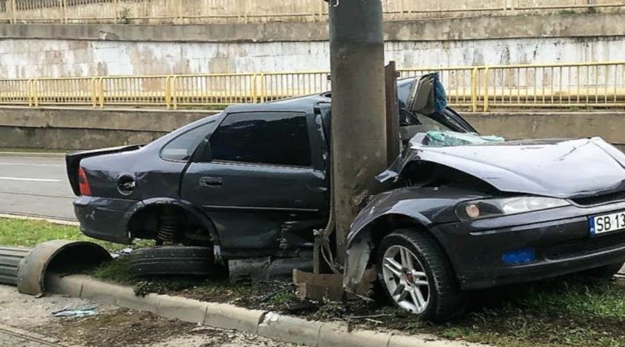 Inconștiență maximă! Un bărbat băut bine și fără permis s-a urcat la volanului unei mașini și a intrat într-un stâlp din beton.