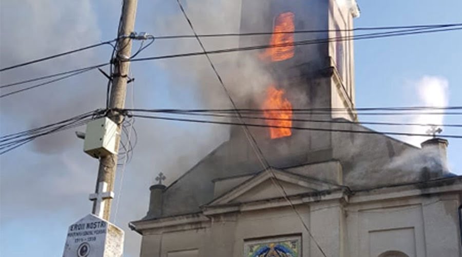 Biserică în flăcări! Focul a pornit din senin, iar turla edificiului s-a prăbuşit!