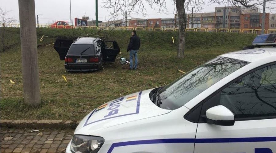 Șoferul unui BMW a pierdut controlul volanului în urma unei depășiri, a rupt parapeții de protecție când a revenit pe banda sa de mers, a lovit un copac și un stâlp după care a aterizat pe spațiul verde aproape de capătul pasajului.
