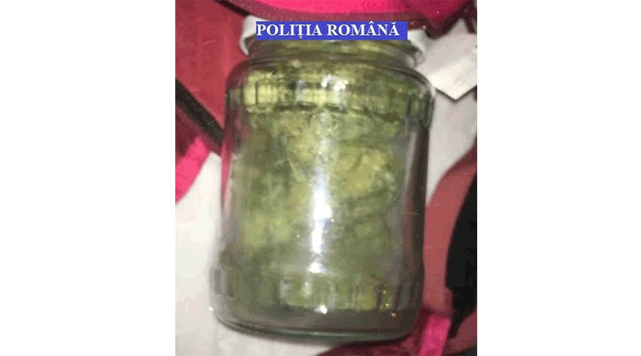Captură importantă a polițiștilor, noaptea trecută! Aceștia au confiscat un borcan de 500 de ml plin cu muguri de canabis.