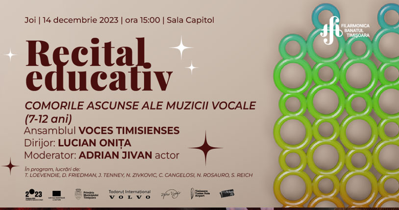 Filarmonica Banatul Timișoara îi invită pe micii spectatori la un recital de colinde, joi, 14 decembrie 2023, de la ora 15:00, la Sala Capitol.