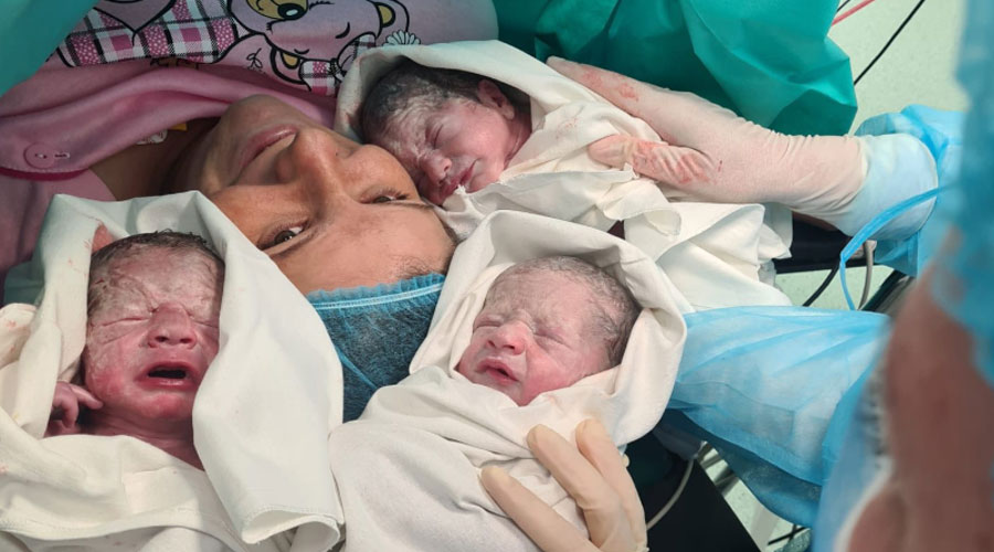 Aceștia au avut la naștere greutăți de 1.900 g, 1.900 g și 1.610 g. Toți au primit scoruri APGAR bune și se află sub supraveghere medicală, cu o evoluție favorabilă.