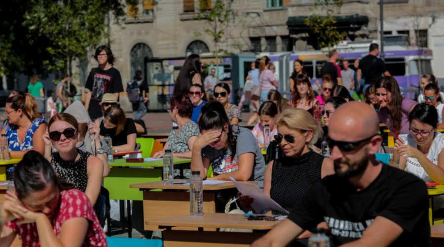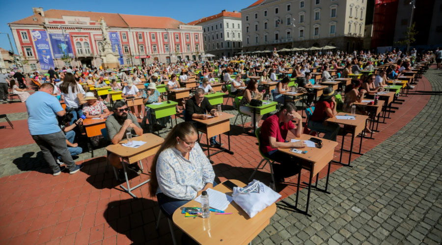 Peste 500 de de timișoreni, de la copii de școală primară până la seniori de peste 80 de ani, au luat parte la „Marea Dictare Urbană”, un concurs inedit dedicat frumuseții și corectitudinii limbii române.