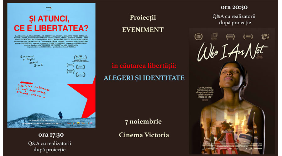 „În căutarea libertății: alegeri și identități” se va desfășura pe parcursul a două zile, la Cinema Victoria va găzdui, în 7 noiembrie, de la ora 17.30, cu proiecția filmului „Și atunci, ce e libertatea?”, iar de la 20.30, cu filmul „Who I Am Not”.