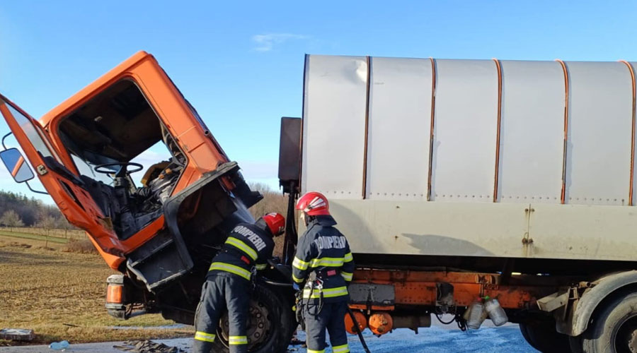 A fost afectată de incendiu instalația electrică și o parte din cabină, intervenția promptă a pompierilor salvând 80% din autovehicul.