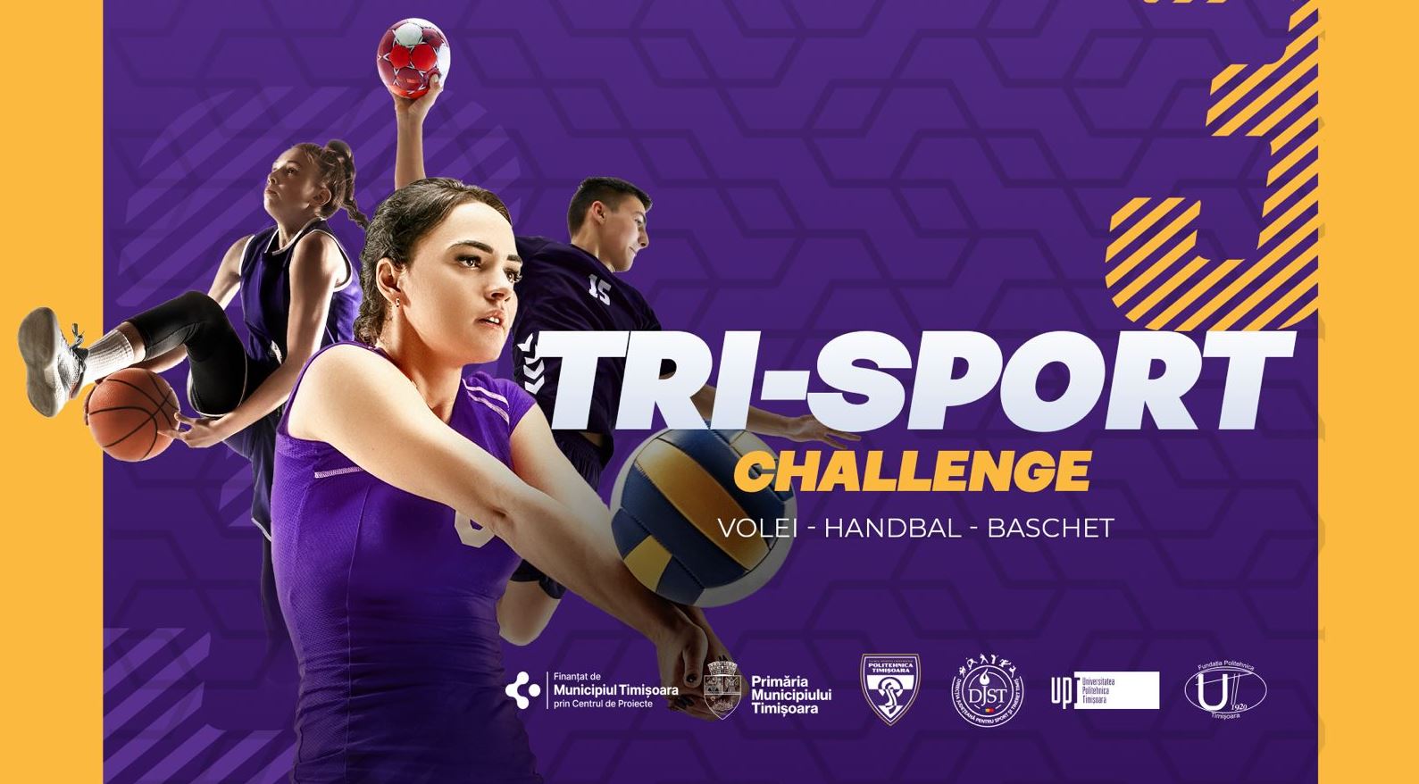 Proiectul „Tri-Sport Challenge: Campionat Interșcolar de Volei, Baschet și Handbal” este organizat de Clubul Sportiv Universitar Politehnica Timișoara și Inspectoratul Școlar Județean Timiș. Partenerii și susținătorii demersului sunt Direcția de Sport Timiș, Fundația Politehnica Timișoara, Comisia Județeană de Arbitraj pentru Volei, Asociația Județeană de Baschet și Asociația Județeană de Handbal.