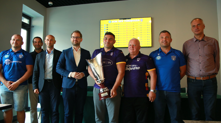Alături de jucători, antrenor și managerul clubului, la eveniment au fost prezenți prorectorul USVT și primarul orașului.