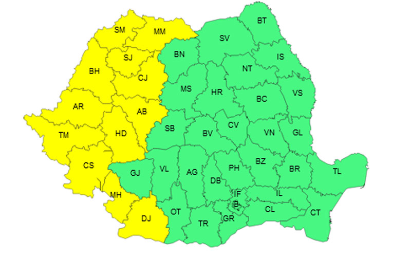 Va fi valabil mâine, în Banat, Maramureș, Crișana, vestul Transilvaniei și sud-vestul Olteniei.