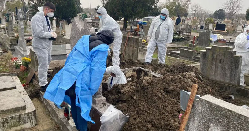 La trei ani de la decesul pus de medici pe seama infectării cu coronavirus, cadavrul unei femei a fost astăzi dezgopat.