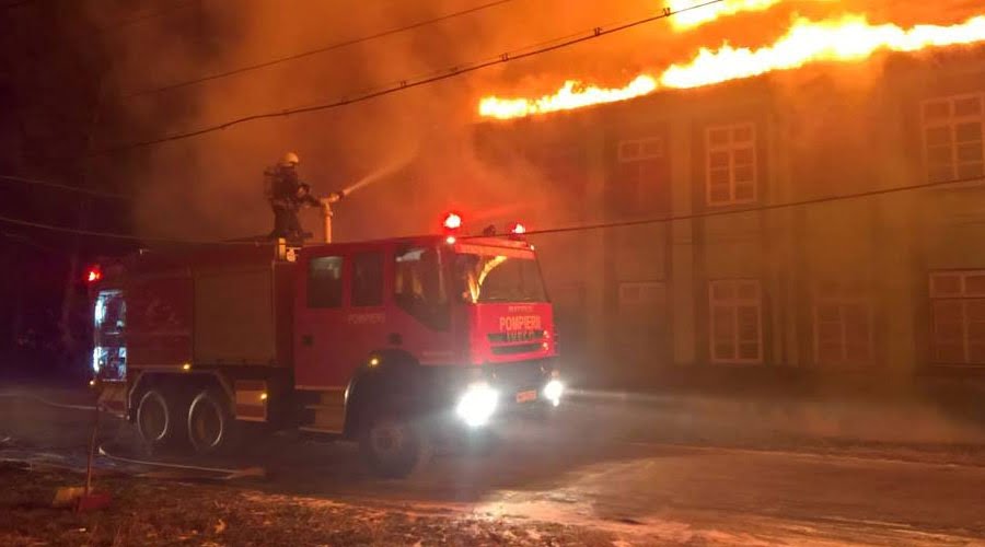 Atunci, pompierii s-au chinuit ore în șir să stingă flăcările care au cuprins întreaga clădire și care amenințau să se extindă.