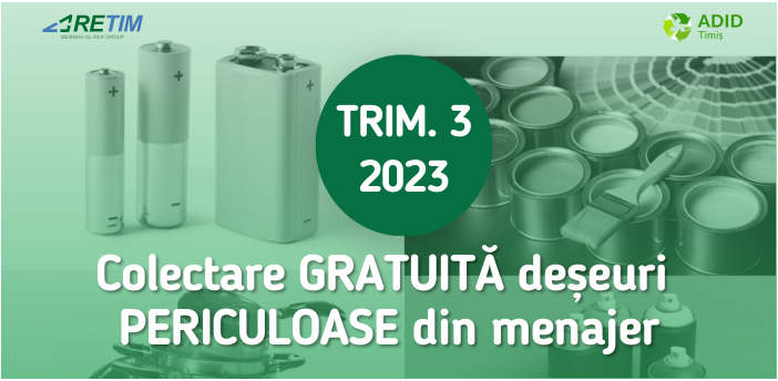 Ce facem cu deșeurile periculoase din menajer? RETIM și ADID Timiș încep a treia campanie de colectare a deșeurilor PERICULOASE din zona 1 rural a județui Timiș din 2023!