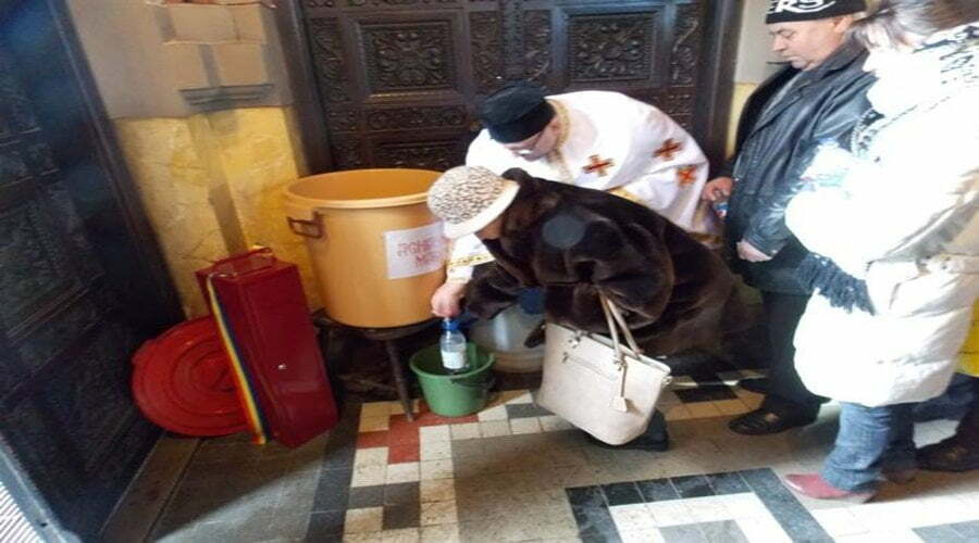 Oamenii au îndurat frigul pentru ca la finalul slujbei să ia acasă și Agheasma Mare.