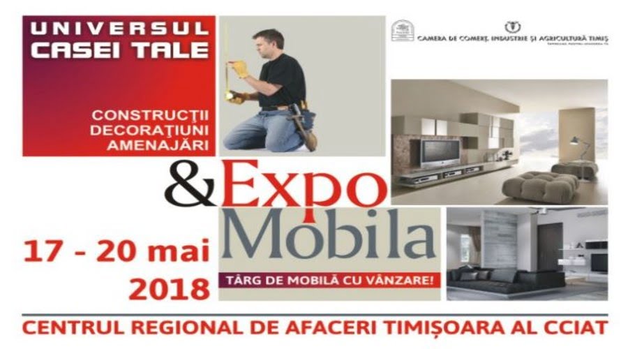 În perioada 17 – 20 mai 2018, Camera de Comerţ, Industrie şi Agricultură Timiş organizează la Centrul Regional de Afaceri al CCIAT o nouă ediţie a expoziţiei naționale specializată în mobilier, amenajări interioare și exterioare, sub genericul: UNIVERSUL CASEI TALE & Expo Mobila.
