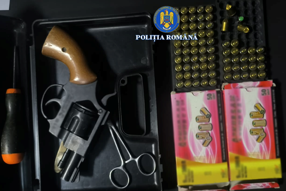 Totodată, au găsit și confiscat un pistol neletal, un pistol letal, un tub cu aer comprimat, muniție și pachete de țigarete netimbrate, deținute ilegal, motiv pentru care polițiștii au aplicat o amendă de 20.000 de lei.