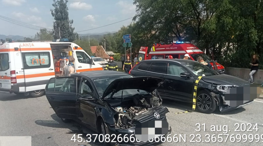 Cinci victime, după un impact violent, între două mașini! Trafic rutier blocat, în zona accindentului