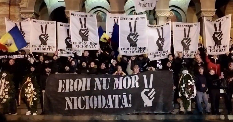 Pe tot traseul, suporterii alb-violeţi şi revoluţionarii care li s-au alăturat, au scandat „Cinste lor, cinste lor, cinste lor, eroilor!”, „Libertate!” sau „Jos comunismul!”, exact ca în urmă cu 34 de ani.