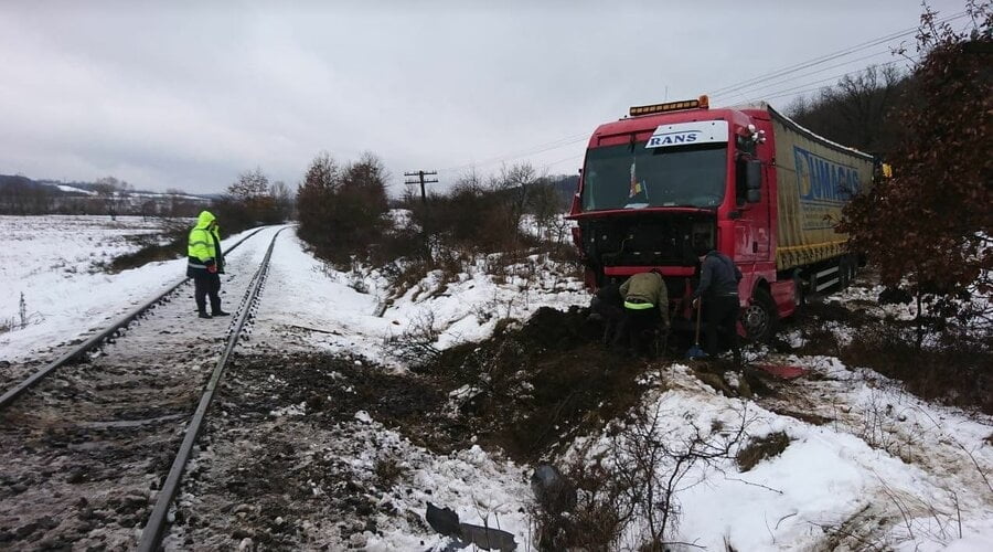 Circulația trenurilor a fost întreruptă astăzi, pentru mai multe ore.Un tir a derapat pe șosea, și a ajuns pe liniile de tren.