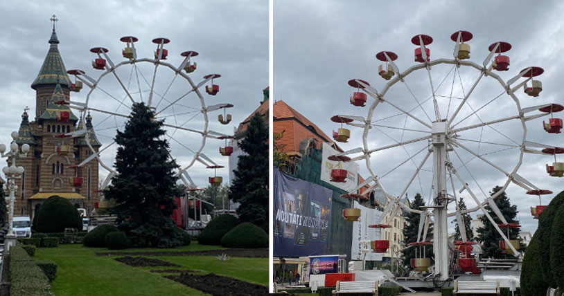 Controversata roată panoramică a revenit în centrul Timişoarei! Nu lipseşte nici în acest an, de la Târgul de Crăciun