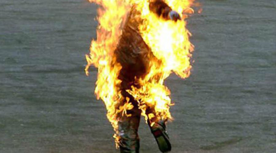 Criminalul, care era sub influenţa băuturilor alcoolice, a aprins cu o brichetă, hainele unui alt bărbat.