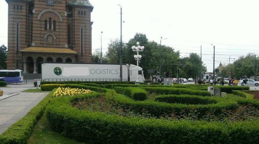 Cu tirul prin faţa Catedralei! Amenzi de aproape 50.000 de lei, pentru şoferii maşinilor de mare tonaj