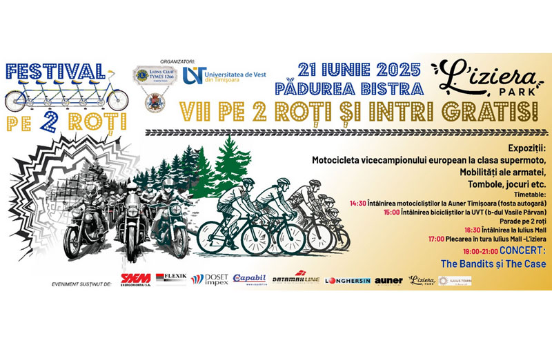 Este vorba despre evenimentul intitulat „Festival pe două roți”, care va avea loc sâmbătă, la Liziera Park și care își propune sprijinirea accesului la educație al copiilor din satul izolat Ineleț, din județul Caraș-Severin.