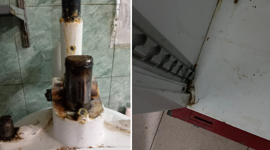 11. Ribs Grill – Deficiente: materii păstrate fără respectarea temperaturii recomandate de producător. Produse lactate, materii prime, păstrate în vitrina frigorifica destinata băuturilor răcoritoare, cu rafturi neigienizate, cu vopsea exfoliata, fără a asigura temperatura recomandata de producător. Uleiul neschimbat, cu resturi de arsură, culoare modificata. Sancțiuni o amenda în valoare de 6.000 lei si oprirea definitivă și retragerea din circuitul consumului uman la produse respectiv măsura de oprire temporară a prestării serviciului până la remediere.