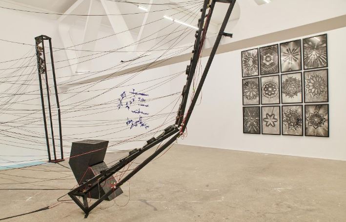 În interiorul fantomaticelor structuri geometrice propuse de Cristian Rusu, artiștii invitați par eliberați de constrângerile spațiului, populează cu nonșalanță toate ungherele și planurile, se desfășoară pe orizontală, dar și pe verticală.