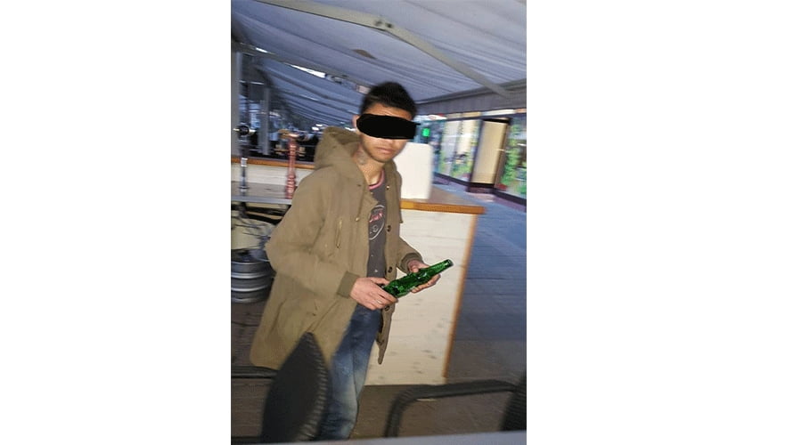 Acesta stătea pe scările magazinului Modec, cu un suc în mâne, iar când o patrulă a Poliției Locale a trecut pe lângă el, a devenit agitat.
