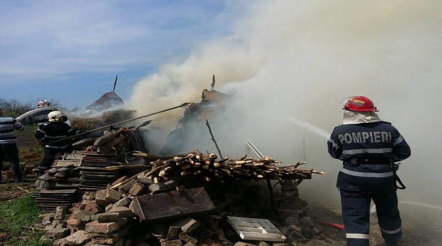 Două ore s-au chinuit pompierii să stingă focul ce a pornit de la o scânteie, la mai multe căpițe de fân. Flăcările amenințau să se extindă chiar la casele din apropiere.