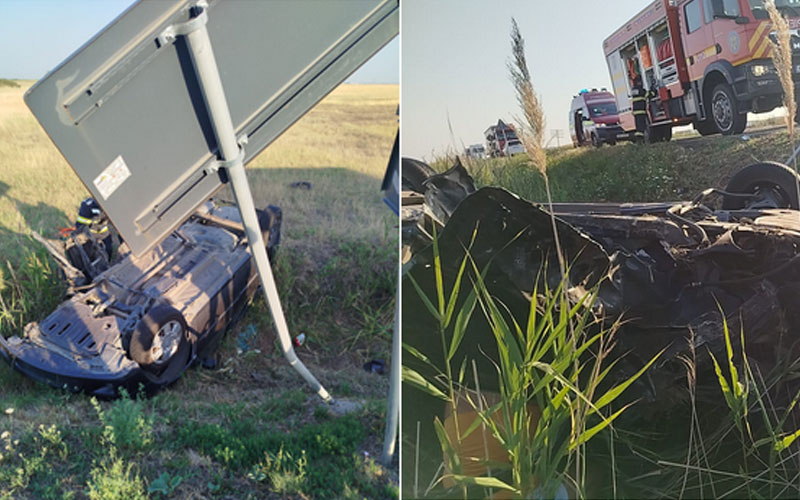 Impactul a fost atât de puternic încât ambele autoturisme implicate au ieșit în afara șoselei și au ajuns pe câmpul de pe marginea drumului. Una dintre mașini chiar s-a răsturnat.