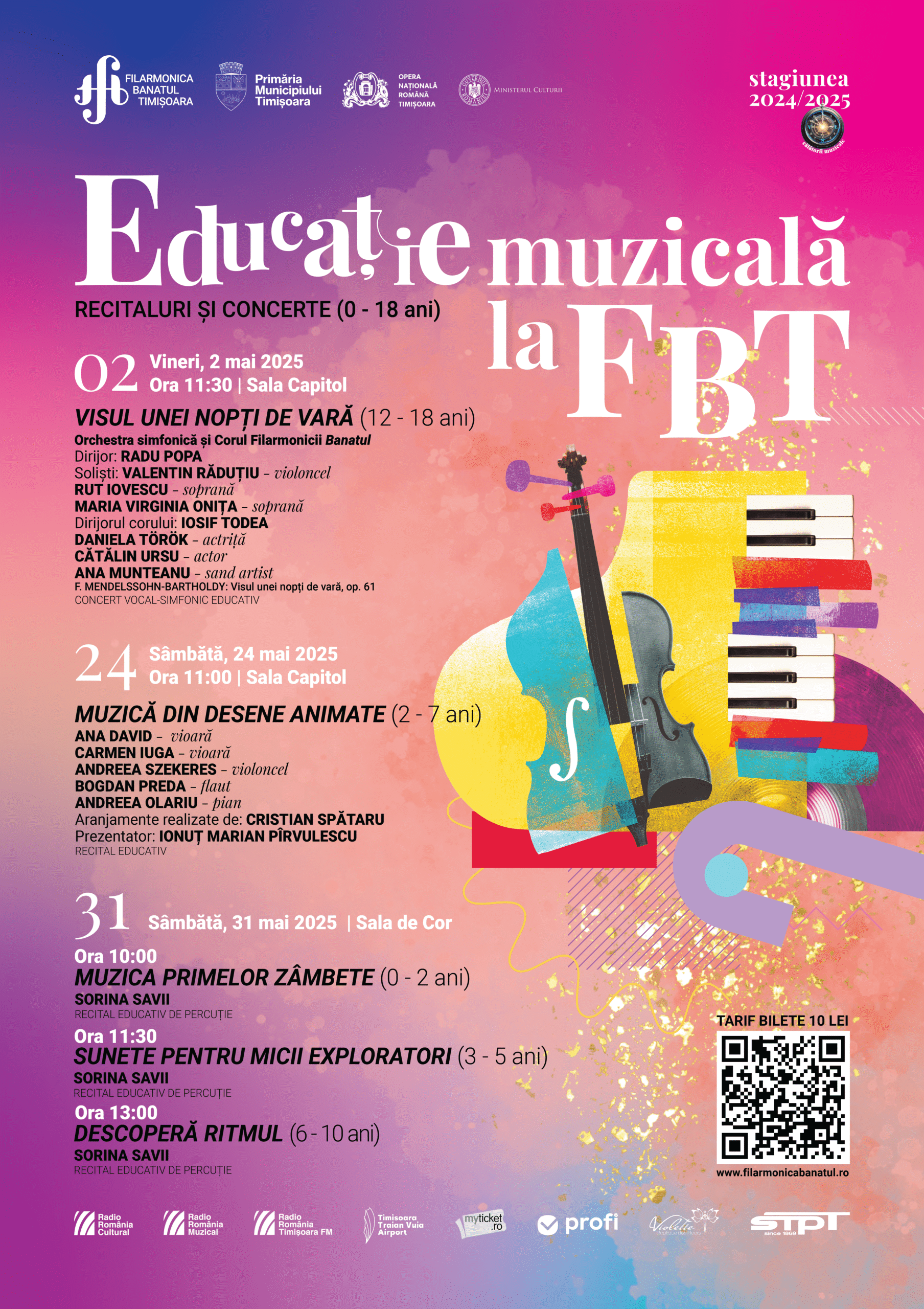 Educație muzicală, la Filarmonica Banatul din Timișoara, în această lună! Vor fi organizate concerte și recitaluri, deschise bebelușilor, copiilor și tinerilor