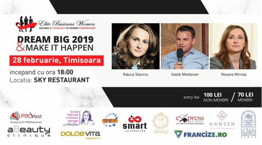 ELITE Business Women în parteneriat cu Camera de Comerț din Timiș organizează la Timișoara evenimentul ”DREAM BIG and Make It Happen”!