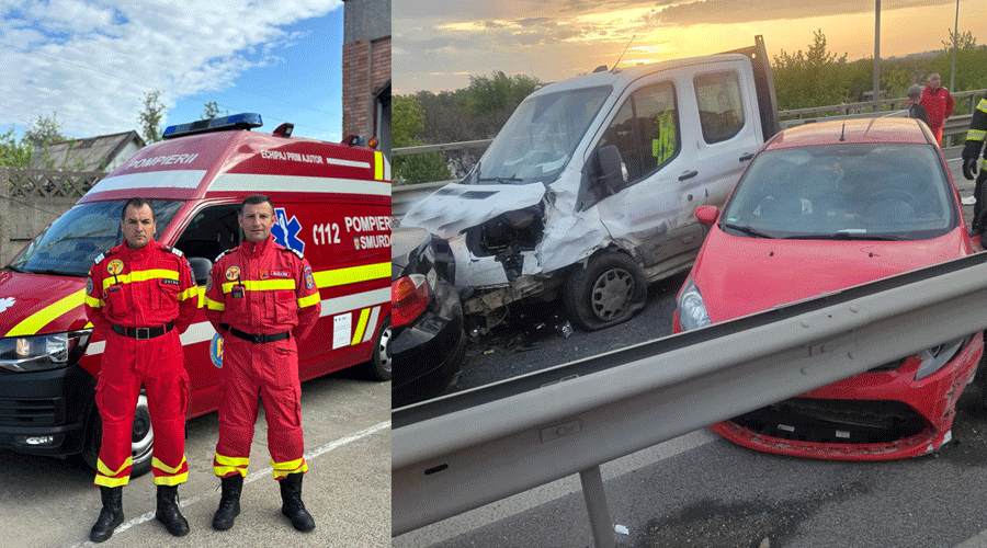 La puțin timp, echipajele SMURD și ambulanțele au preluat intervenția, transportând trei dintre victime la spital cu contuzii. Dar primul ajutor, acele minute vitale de după impact, a fost oferit de doi pompieri care nu se aflau în misiune. Se aflau doar în drum spre muncă.