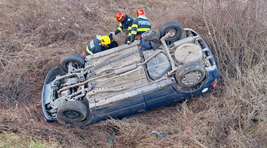 Un accident cumplit s-a petrecut, în urmă cu puțin timp, cân a fost nevoie și de intervenția unui echipaj de descarcerare, după ce o mașină s-a răsturnat pe marginea drumului.