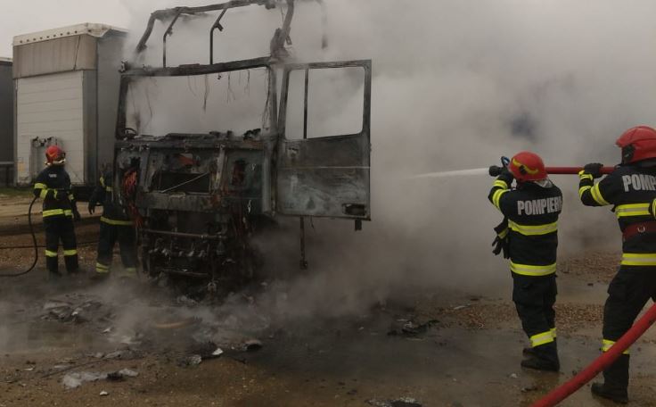 Au ars doar capul tractor la care au pronit flăcările, celelalte camioane fiind salvate.