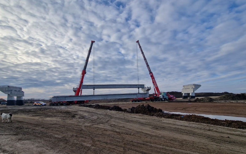 Astfel, a început montarea de grinzi la pasajul din viitorul nod rutier, în apropiere de drumul național Timișoara – Arad, și la pasajul peste drumul comunal care face legătura cu localitatea Cerneteaz.