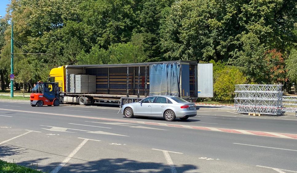 Traficul a fost deja restricționat pe o bandă de circulație de pe bulevardul IC Brătianu, iar în zonă a fost adusă scena care urmează să fie montată.