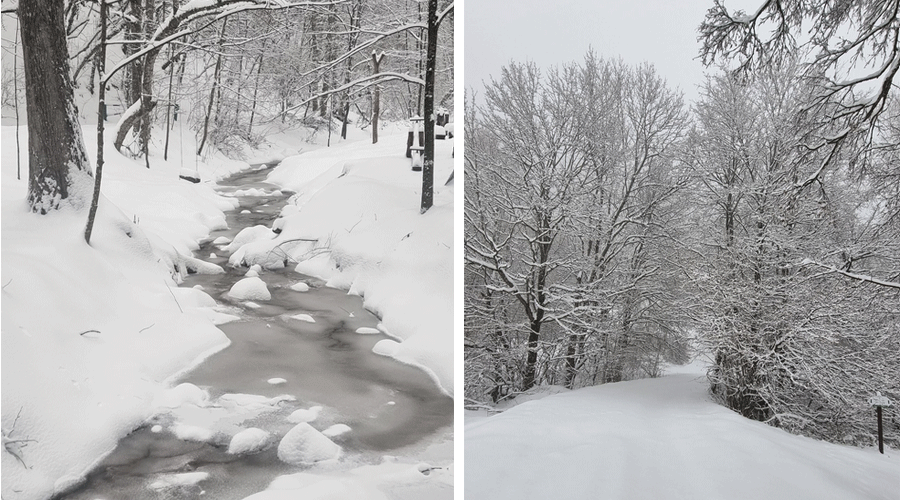 În acest cadru de basm, fiecare colț de parc pare pictat cu migală: brazi încărcați de zăpadă, poteci acoperite de nea, izvoare înghețate și văi care par desprinse din povești.