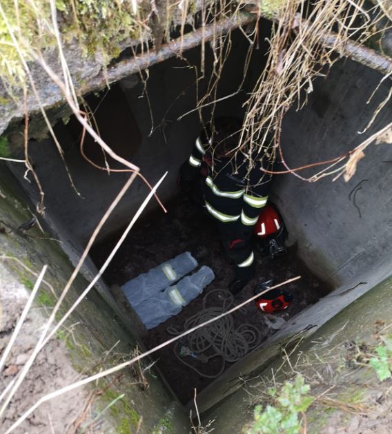 Pompierii au fost alertați de o femeie din localitatea Suncuiuș din județul Bihor, care a văzut câinele în bazinul adânc de circa 2,5 metri, de pe amplasamentul unei foste balastiere.