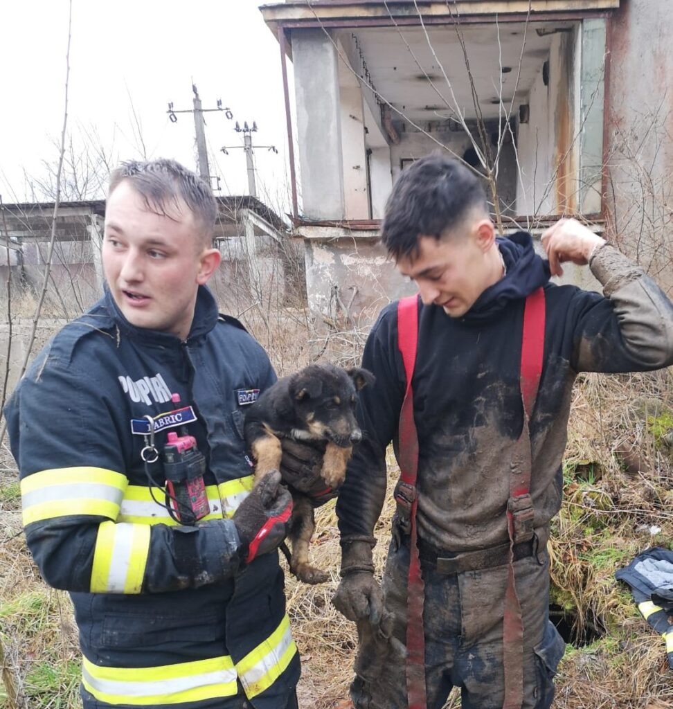 Pentru salvarea cățelului, doi membri ai echipajului de pompieri au coborât în bazin, iar unul dintre ei a pătruns circa 4-5 metri în interiorul conductei, reușind să evacueze puiul de câine, în siguranță.