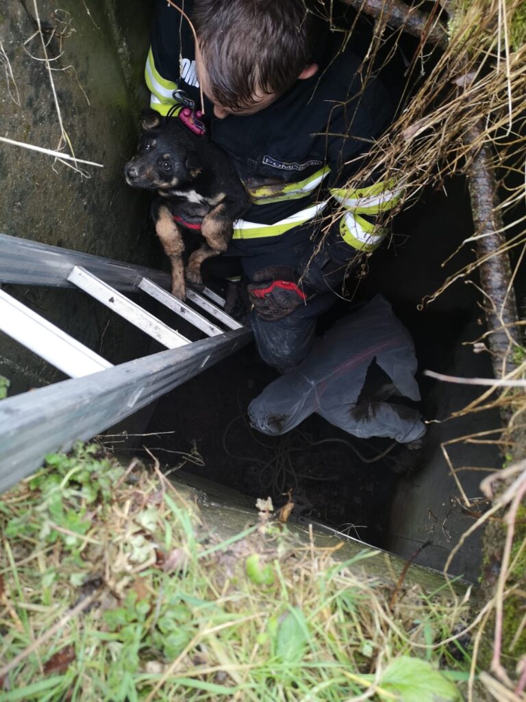 Un cățeluș a fost salvat astăzi de pompieri, după ce patrupedul a căzut într-un bazin dezafectat și de frică a intrat într-o conductă de alimentare a acestuia.