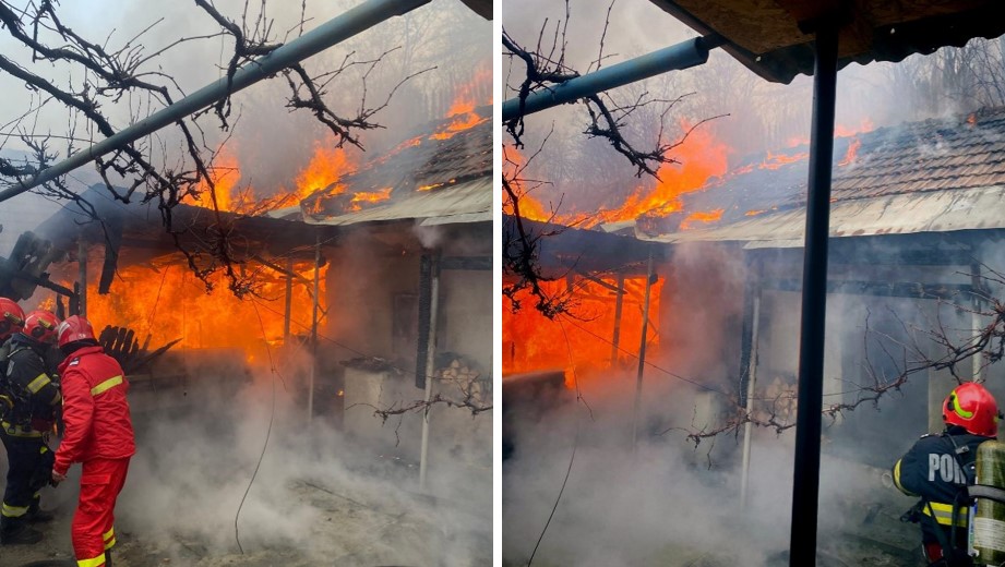 FOTO Gospodărie cuprinsă de flăcări! Pompierii intervin chiar în aceste momente pentru a lichida incendiul