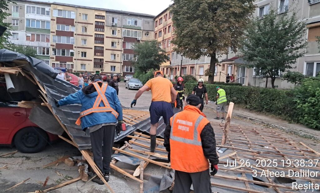 Pompierii au mai îndepărtat elemente de acoperiș dislocate de vânt și în localitățile Slatina-Nera și Reșița.