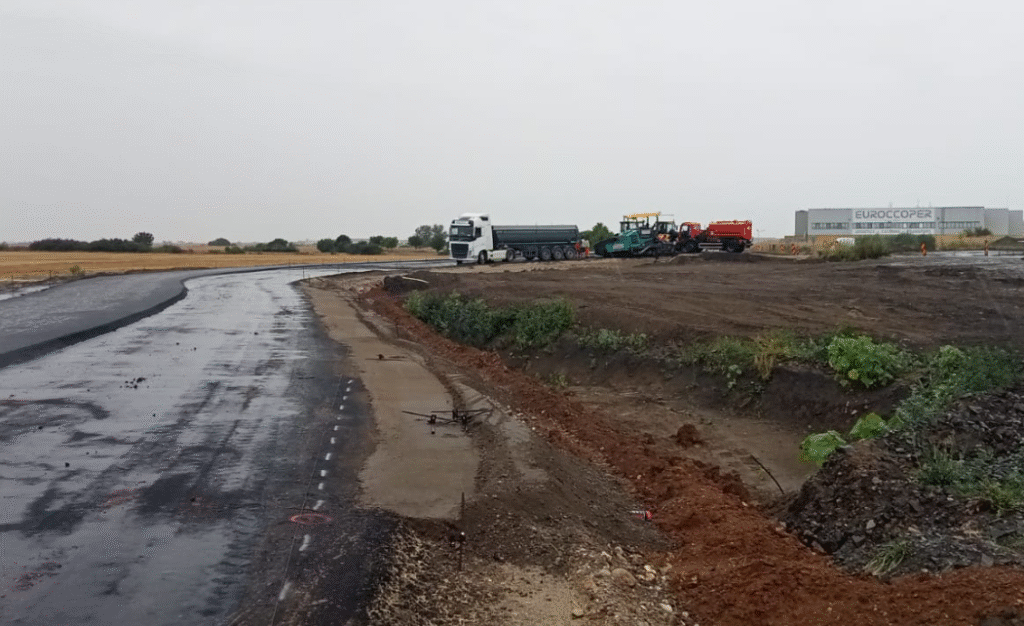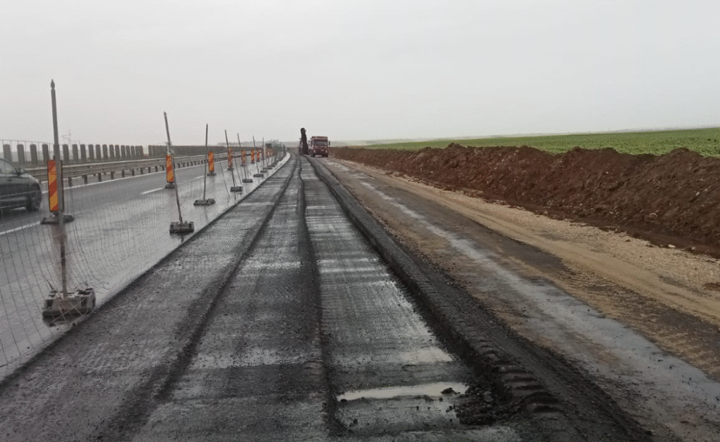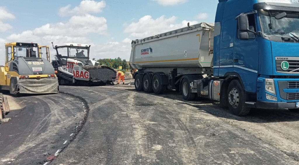 Pe drumul de legătură care conectează DN 69 Timișoara–Arad cu autostrada A1, echipele de muncitori au început aplicarea stratului de uzură, pe primele segmente deja finalizate.