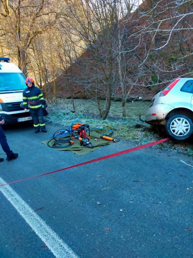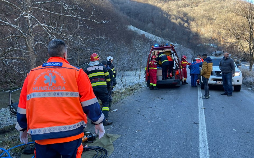 ”Pompierii militari ai Detașamentului Hunedoara au fost solicitați, cu puțin timp în urmă, prin apel la 112, să intervină la un accident rutier care a avut loc pe DJ 687 D, la intrarea în localitatea Toplița. Echipajele s-au deplasat la fața locului cu o autospecială de stingere, dotată cu modul de descarcerare și cu o ambulanță SMURD. Totodată, la locul accidentului a intervenit și o ambulanță a Serviciului de Ambulanță Județean Hunedoara. Autoturismul a derapat în afara părții carosabile, iar în urma accidentului 3 dintre cele 4 persoane aflate în autovehicul, conștiente, dar cu traumatisme, au fost preluate de ambulanțe și transportate la UPU Hunedoara”, transmite ISU Hunedoara.