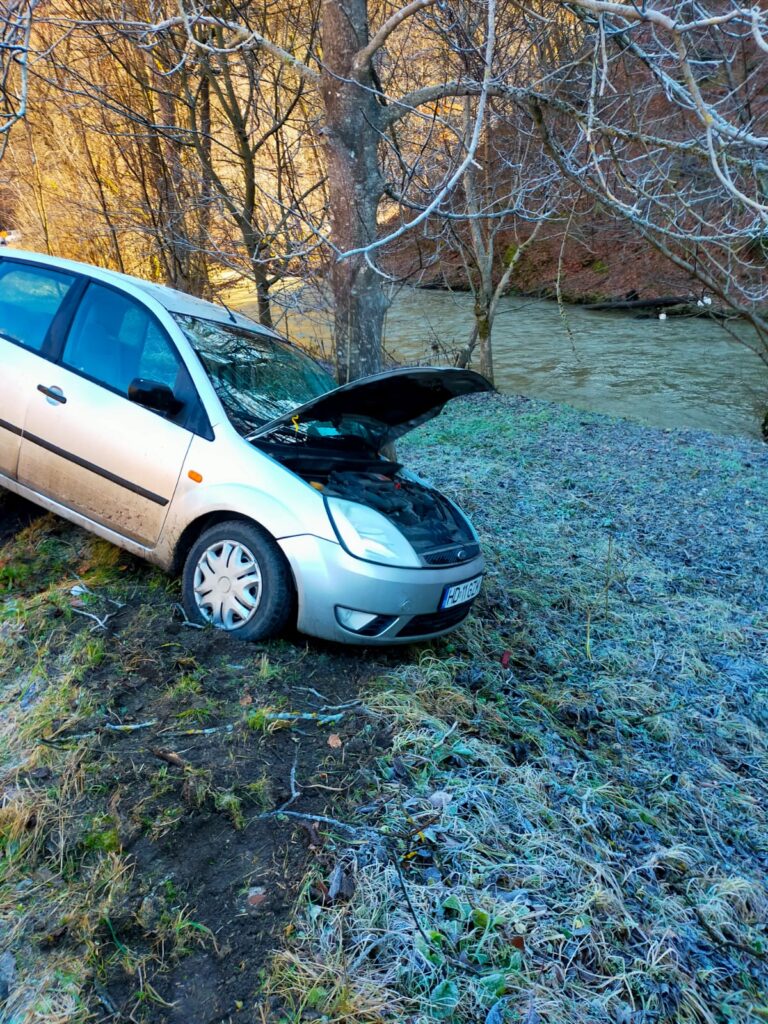 FOTO Trei persoane au ajuns la spital, după ce mașina în care se aflau a derapat și a ieșit în decor!