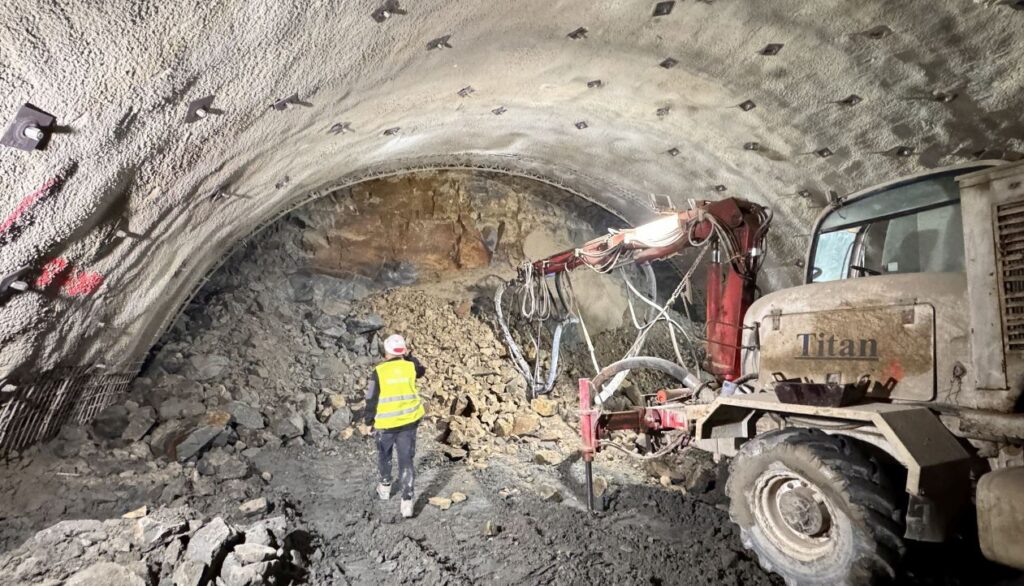 La tunelul al doilea (T2) se lucrează la plăcile de coronament din zona portalelor și continuă lucrările la zona cut & cover.