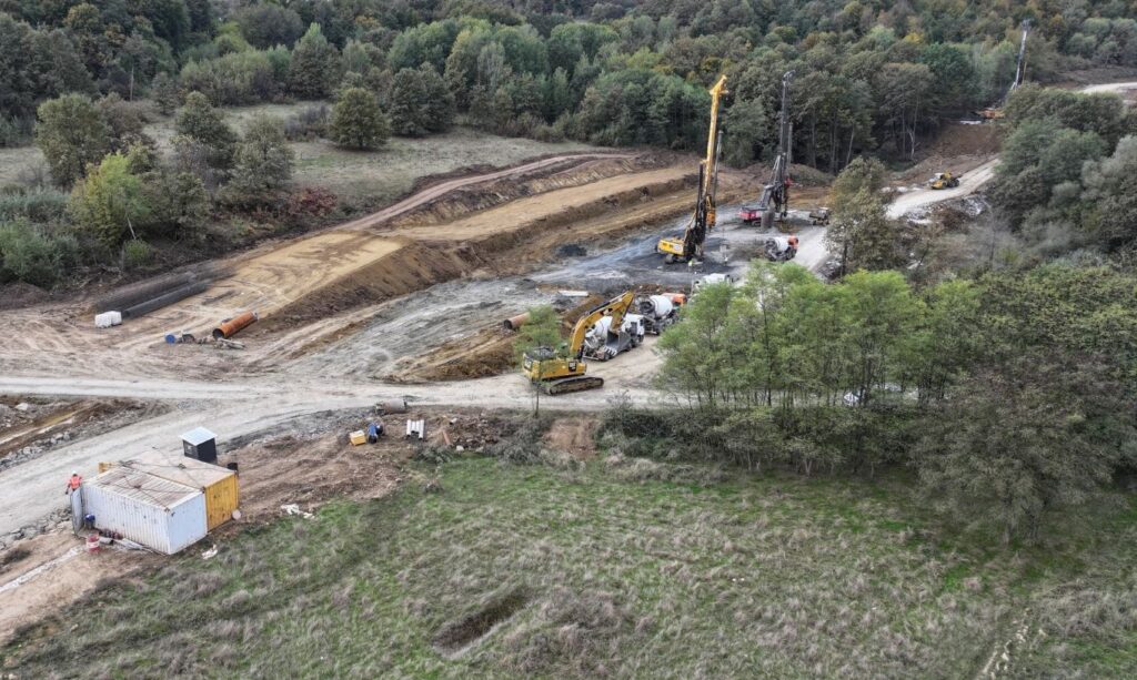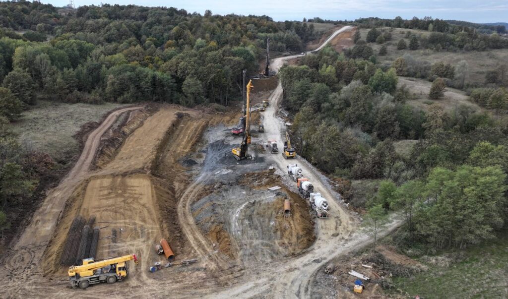 Pe șantier au intrat și partenerii bosniaci ai antreprenorului – Euro-Asfalt – care fac măsurători topografice și fac pregătiri pentru platforma de acces la viitoarele tuneluri.