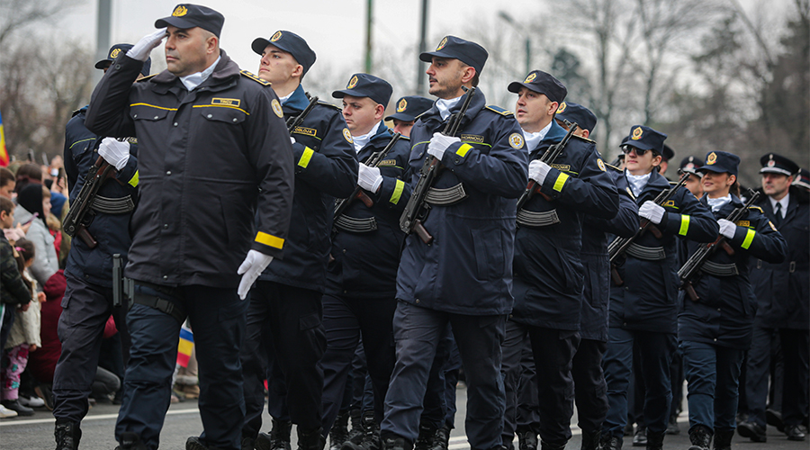 Au defilat detașamentele Brigăzii 18 ISR “Decebal”, Batalionului 185 Sprijin Logistic “Mureș”, Batalionului 32 Cercetare Supraveghere “Mircea”, Inspectoratului Județean de Jandarmi Timiș, Grupării Mobile de Jandarmi, Penitenciarului Timișoara, Inspectoratului pentru Situații de Urgență “Banat”, Inspectoratului de Poliție al Județului Timiș, Inspectoratului Teritorial al Poliției de Frontieră Timișoara, Direcției Generale a Poliției Locale Timișoara.