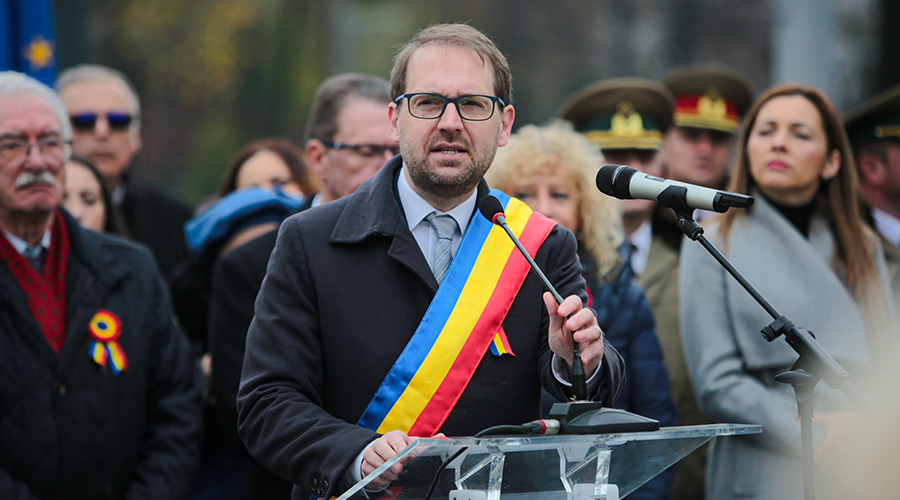 ”În ultimele clipe ale primului război mondial. Regina Maria a scris în jurnalul ei de război. Citez: ”Mă simt plină de speranță și încredere. Am o senzație intensă. Că dacă toată lumea face un efort comun serios, și față face cu curaj faptului că mai avem de îndurat câteva luni grele, dar că la capătul drumului se vine lumina, se va putea trece peste aproape orice. Trăim o perioadă foarte grea, foarte dezorganizată. Toate țările au aceeași problemă. Trebuie doar să strângem din dinți să răbdăm, așa cum am răbdare și războiul și să muncim cât putem”. Pe mine mă inspiră ce a scris regina Maria în jurnalul ei tocmai pentru că ne amintește că ceea ce celebrăm astăzi, vine după o perioadă cumplită pentru strămoșii noștri. Și în Timișoara au fost mii de răniți, morți, căzuți în război, spitalele au fost pline, familiile au fost despărțite. Vom reuși din acești ani de moarte de război de lipsă de speranță, vom reuși să clădim o nouă națiune. Vom reuși oare să îndeplinim visul nostru de a fi uniți? Și cred că și astăzi, dacă mă uit în jur cât de multă lume am venit aici, lume foarte diferită. Oameni cu speranță, cu frustrări, cu dezamăgiri, dar fiecare dintre noi are o resursă, are o energie. Și în România este suma acestor resurse pe care fiecare român le aduce la masă. Asta au reușit românii 1 Decembrie 1918 și asta este ce ar putea să reușim și noi astăzi. Și la fel ca regina Maria, să încercăm prin toate încercările și provocările să privim. Spre viitor, cu speranță, cu încredere unii ceilalți și să ne amintim de aceste cuvinte pe din imnul nostru național, să ne croim noi, soarta noastră. Vă mulțumesc. La mulți ani, România, la mulți ani, tuturor românilor”, a spus primarul Dominic Fritz, în discursul său.